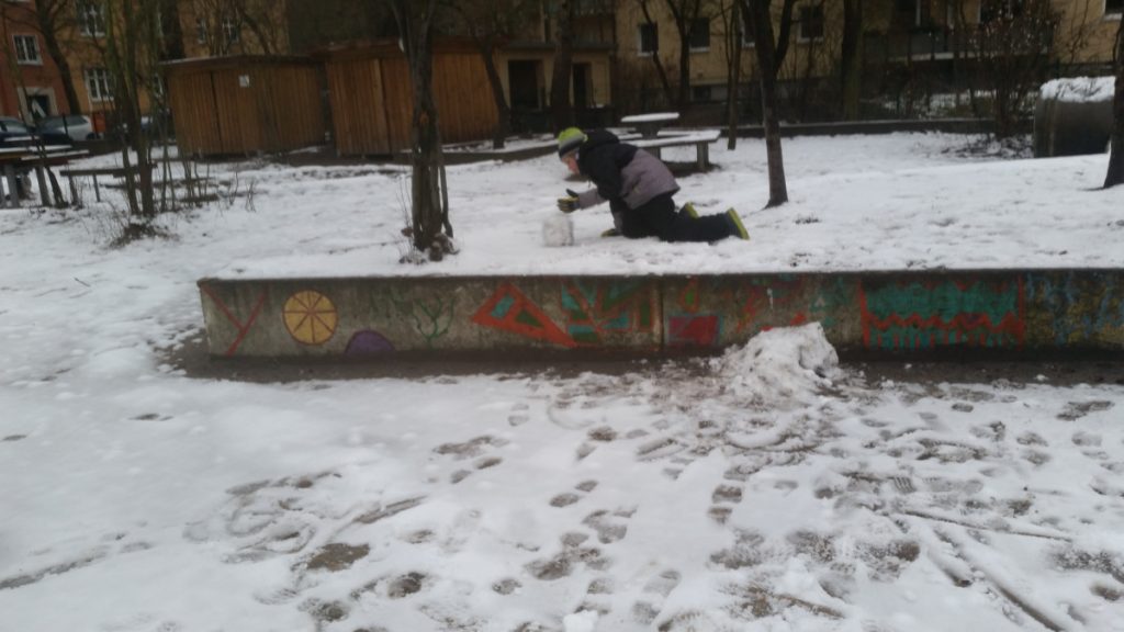 Und dann viel ja noch dieses weiße Zeug vom Himmel – Schnee hieß das, glaub´ ich. Gut, die Menge bedeckte nicht mal den ganzen Boden, aber seit wann lassen sich Kinder davon abhalten. Hochmotiviert gingen sie daran ein Iglu zu bauen – am Ende wurde es immerhin ein Schneepilz. Zum Abschluss spielten wir jeden Tag „Feuer, Wasser, Sturm“ angepasst an die Witterungsverhältnisse. Also war der schwarze Schneematsch – Eis, der graue Schneematsch – Schnee und der völlig zermatschte Schneematsch – was war der nochmal? Na ja, es war auf jeden Fall lustig. In der nächsten Woche, geht´s los mit der Partyplanung für unsere beiden Geburtstagskinder – denn trotz aller Maßnahmen und Beschränkungen, ein bisschen feiern muss schon sein.