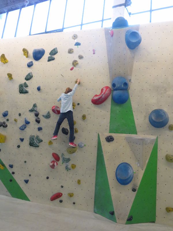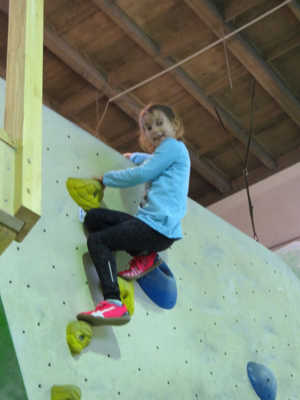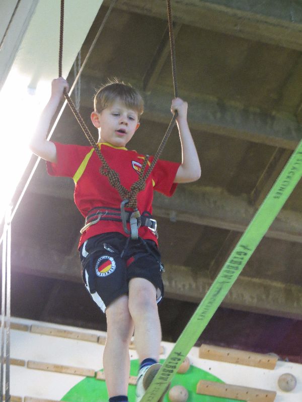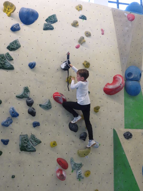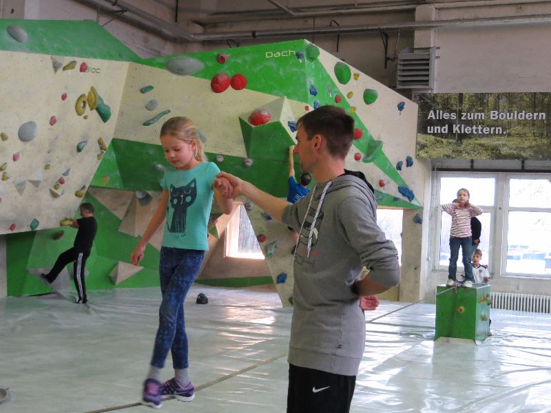 Die Klassen 2d und 2e waren am 21.Dezember bouldern. Wir kletterten ohne Kletterseil und Klettergurt an künstlichen Felswänden in die Höhe. Dabei versuchten wir farbige Routen zu erklimmen. Manchmal mussten wir feststellen, dass unsere Arme noch nicht lang genug sind. Einige mutige Schüler balancierten sogar über unseren Köpfen auf einem dünnen Seil entlang. Hui…, da wurden die Beine manchmal ganz schön wackelig und wir unten gebliebenen kamen aus dem Staunen nicht mehr heraus. Wieder andere nutzten lieber die Slackline oder aber gingen ins Kinderland und kletterten sich von Griff zu Griff ins Bällebad hinein.