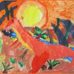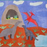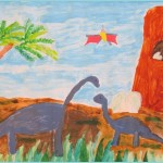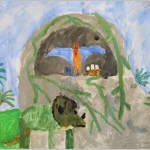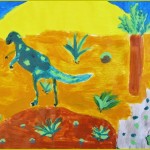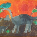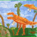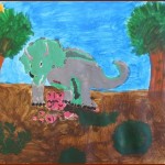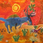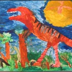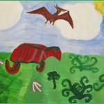 Im Kunstunterricht haben sich die Klassen 4b und 4c mit Dinosauriern beschäftigt.