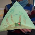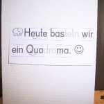 Zuerst lesen wir die Geschichte und lassen sowohl den Riesen als auch Die Haselmaus durch den Wald laufen – wir nutzen dazu verschiedene Musikinstrumente. Dann sammeln wir Wörter zum Riesen und gestalten unserer Quadrama.