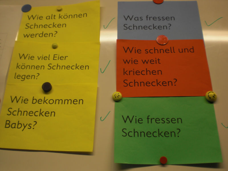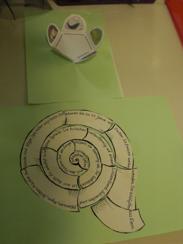 Auch hörten wir tolle Schneckengeschichten und schrieben die Beobachtungen und unser erworbenes Wissen in unsere Schneckenbücher.